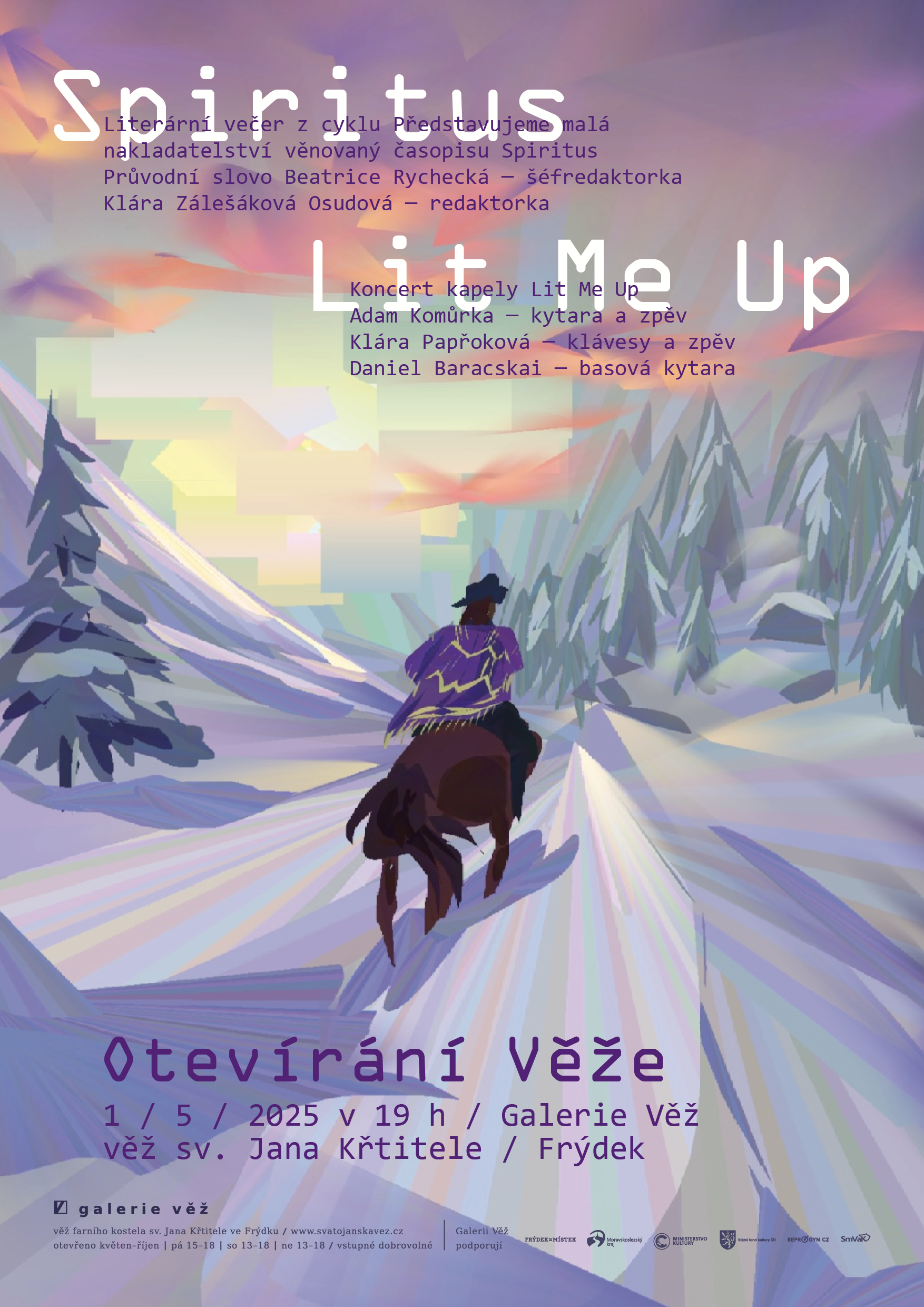 Alternativní skupina Lit Me Up z Frýdku-Místku, jmenována časopisem Headliner jednou z 50 nadějí české hudby roku 2024, odehraje v Galerii Věž intimní, minimalistický set složený primárně z dosud veřejně nehraných písní.